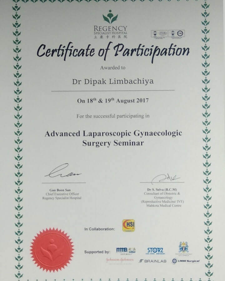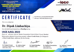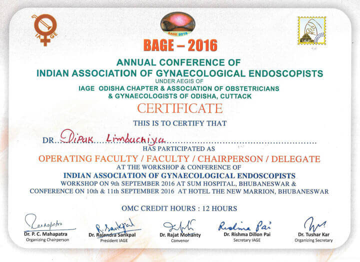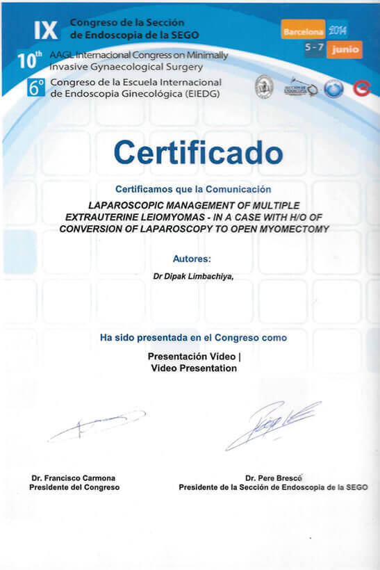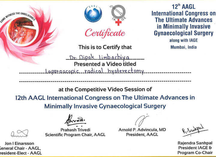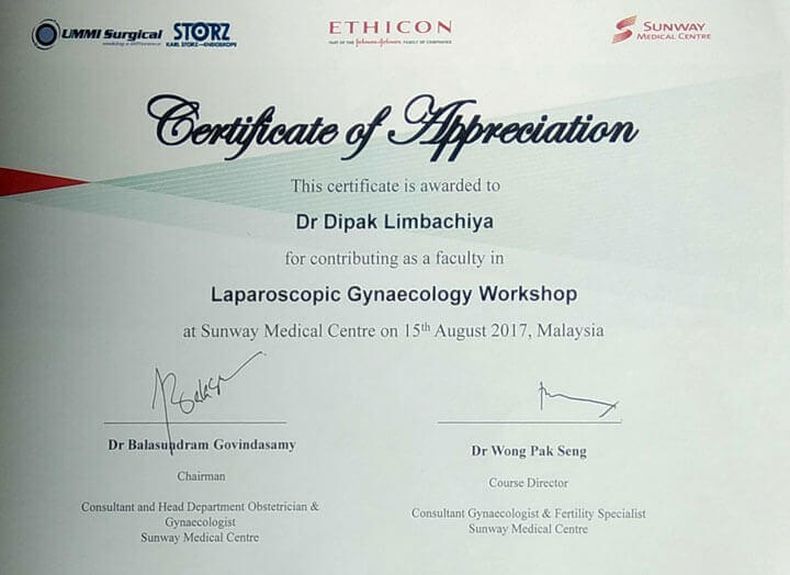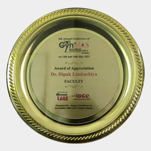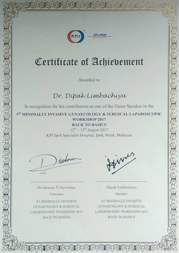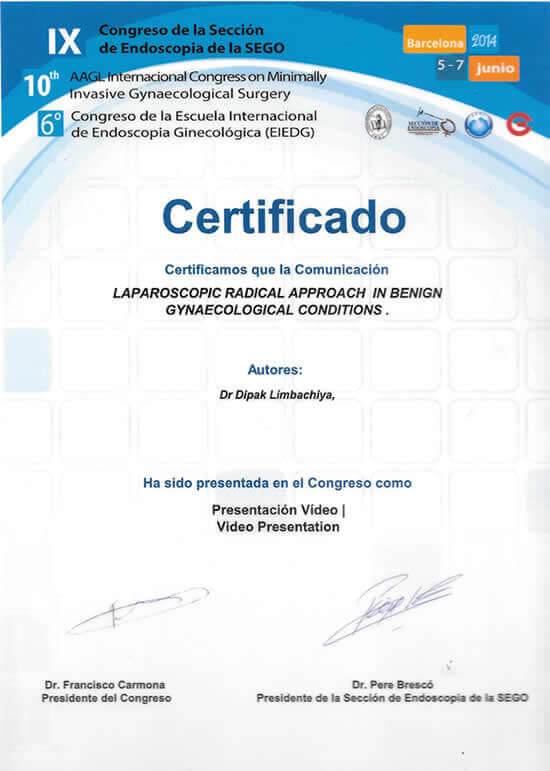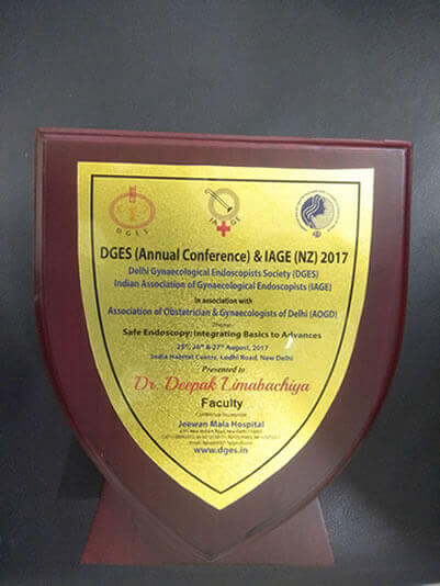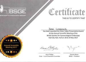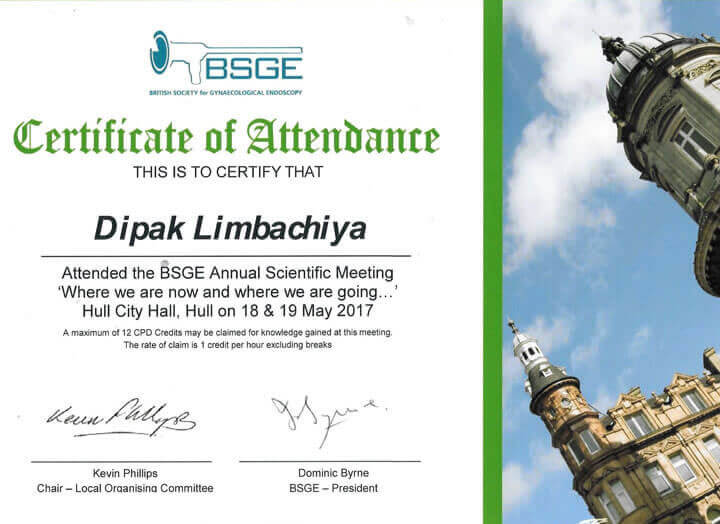 Dr.Dipak Limbachiya received prestigious award at Annual British Society for Gynaecological Endoscopy conference held at Hull, United Kingdom on 18 & 19 May 2017 for presenting 3 videos