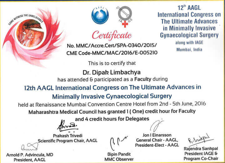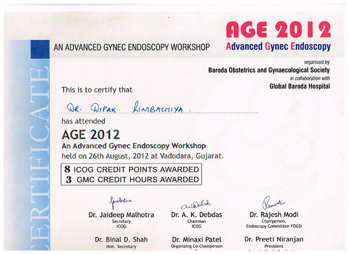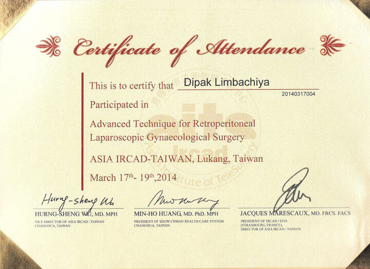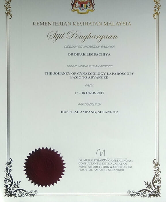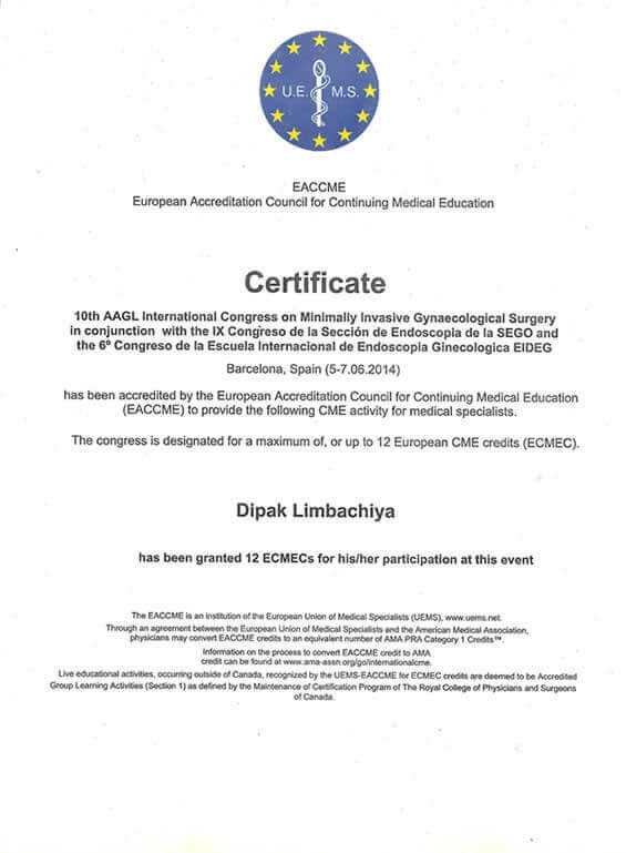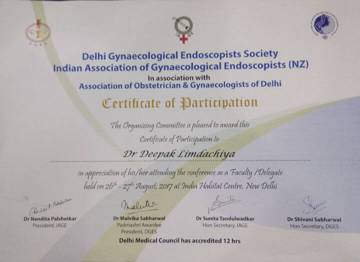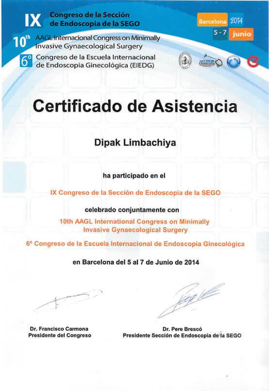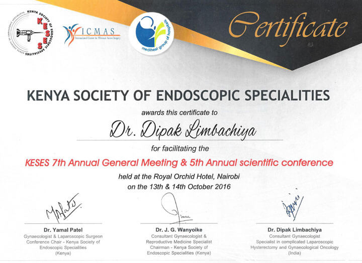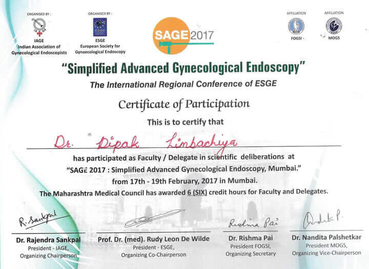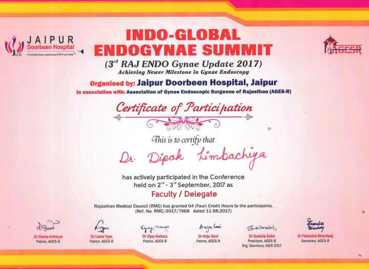 Dr.Dipak Limbachiya received prestigious award at Annual British Society for Gynaecological Endoscopy conference held at Hull, United Kingdom on 18 & 19 May 2017 for presenting 3 videos