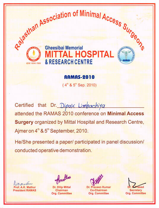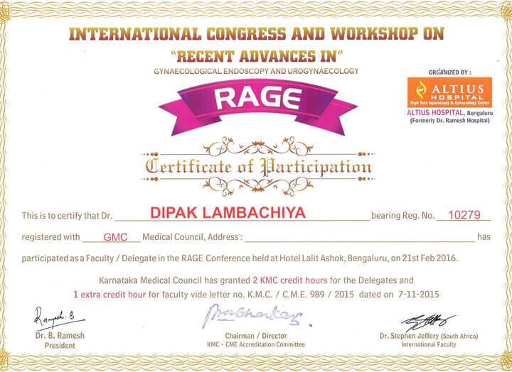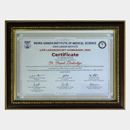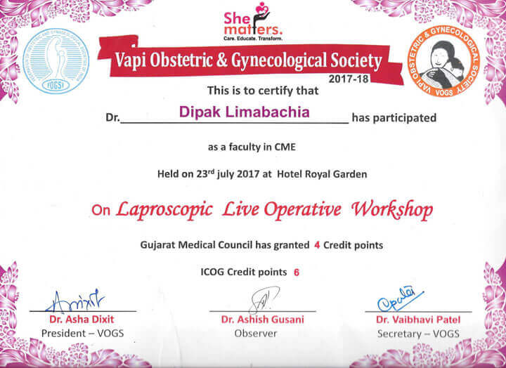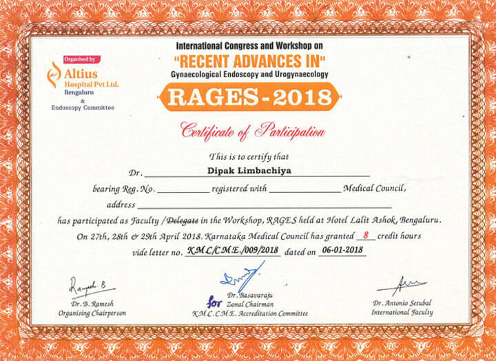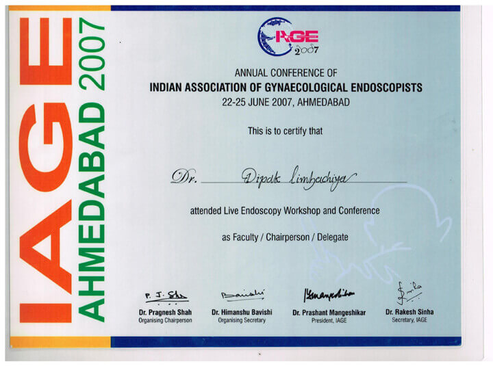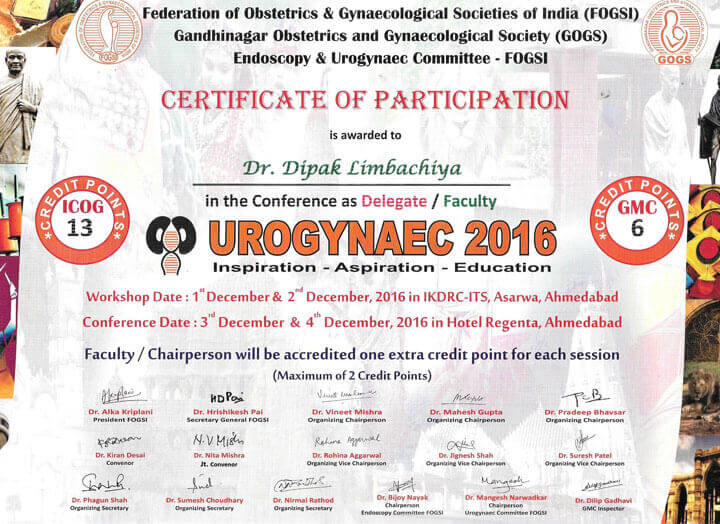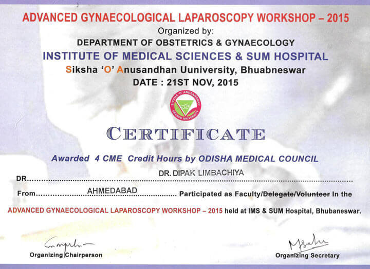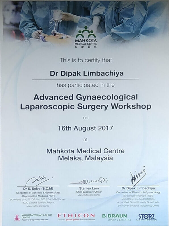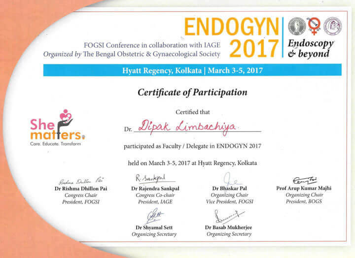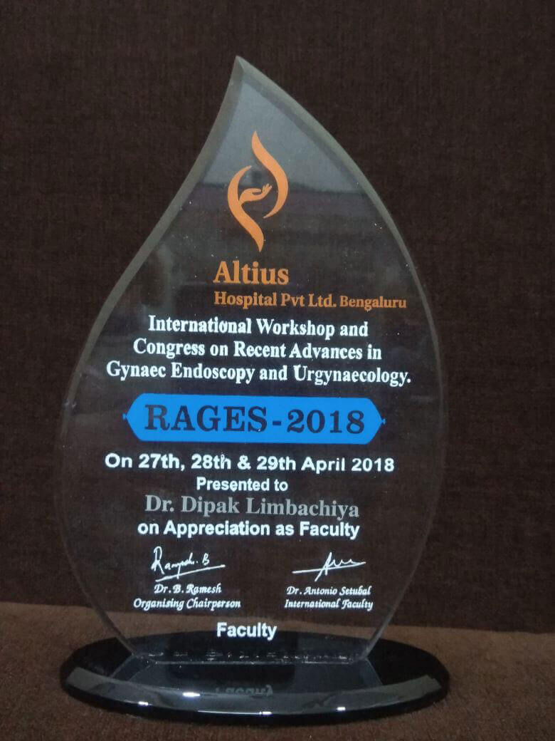 Dr.Dipak Limbachiya received prestigious award at Annual British Society for Gynaecological Endoscopy conference held at Hull, United Kingdom on 18 & 19 May 2017 for presenting 3 videos