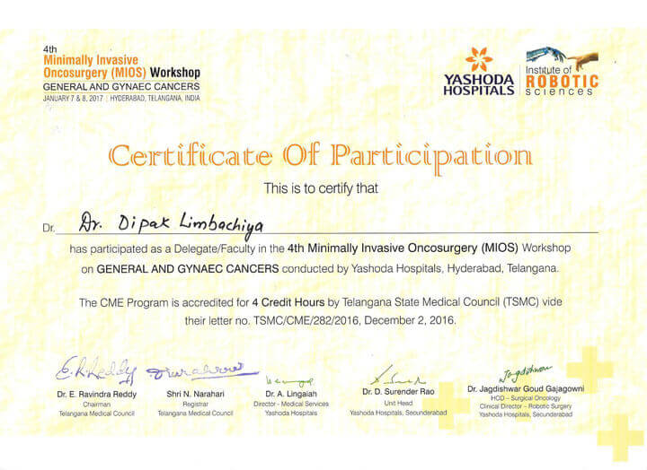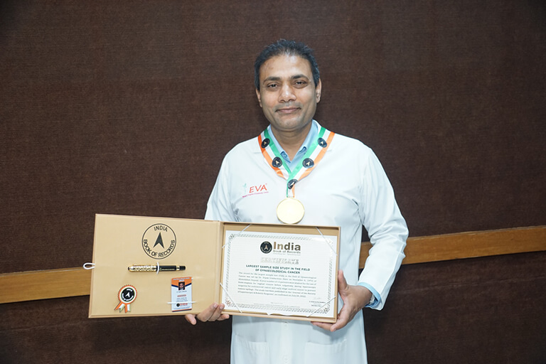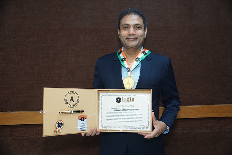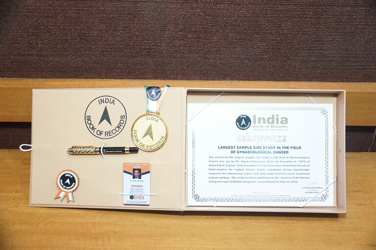 Its an immense pleasure to announce that our research article titled “vaginal closure before colpotomy with Endo-Staplers to prevent tumour spillage in Laparoscopic surgeries for Gynaecological malignancies: rationale and Technique” has been acknowledged in India Book of Records as an original research article with a novel technique with largest sample size in the field of Gynec-oncology for the same.
