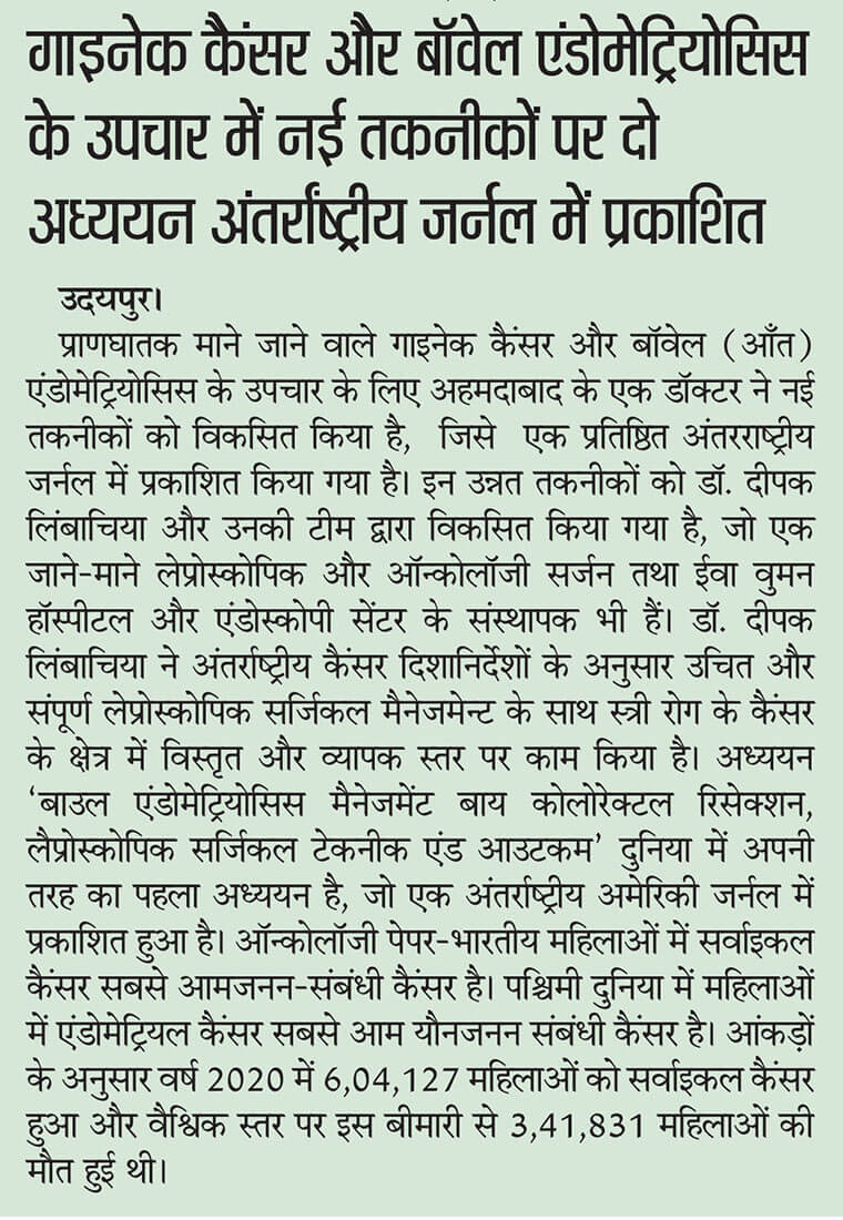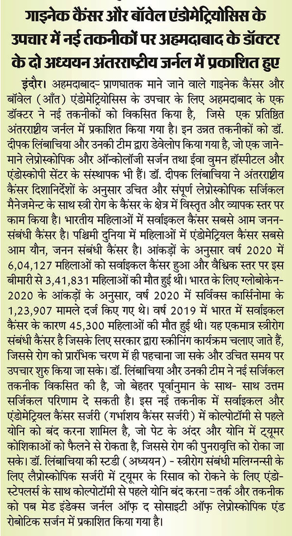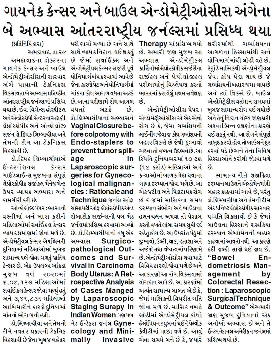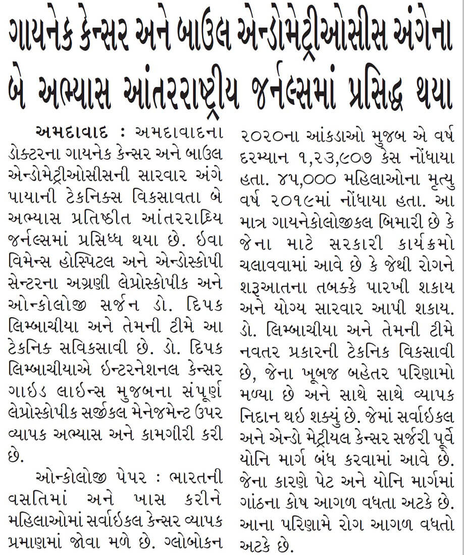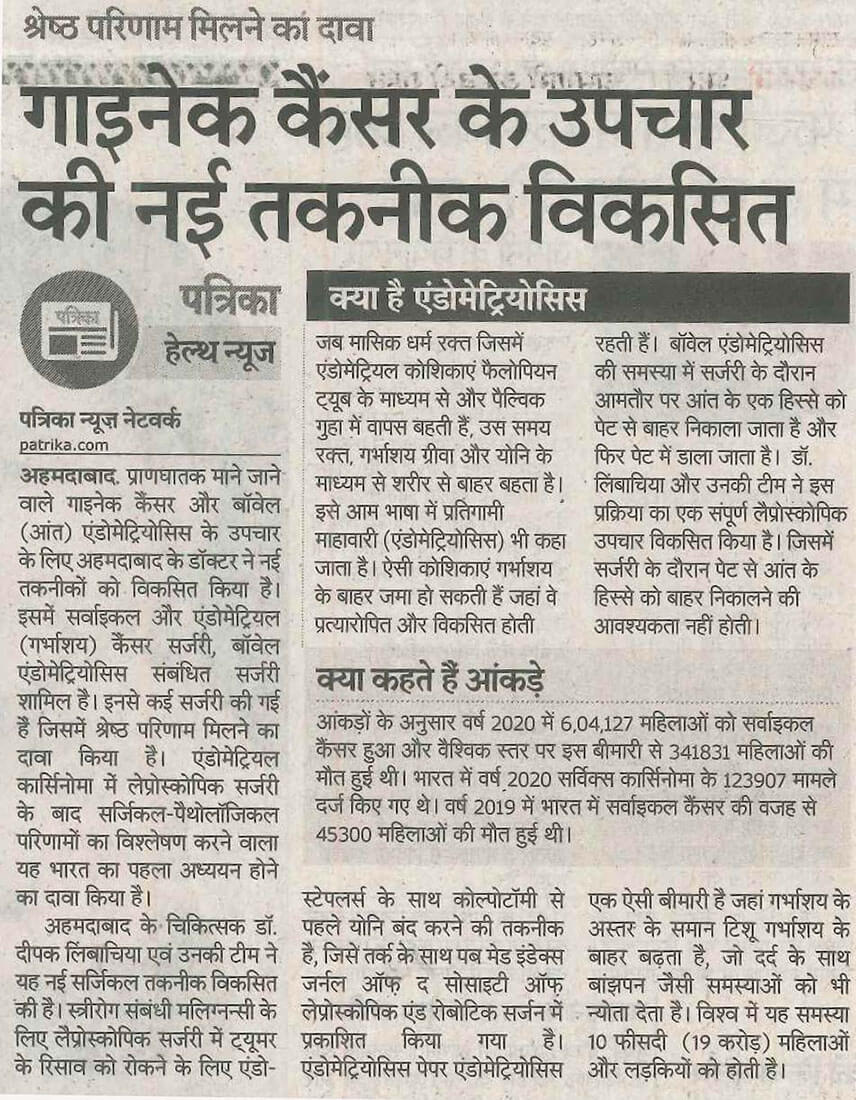 - Laparoscopic Radical Parametrectomy : An Alternative for Cervical or Endometrial Carcinoma After Hysterectomy Limbachiya D., Chawla H. & Mankad M.H.